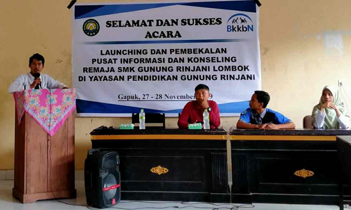 Melihat dinamika tersebut, SMK Gunung Rinjani Lombok membuat organisasi intra sekolah yaitu Pusat Informasi dan Konseling Remaja (PIK-R) sebagai wadah siswa untuk diberikan pembekalan mental dan bimbingan konseling remaja yang dilounching Rabu (27/11/2019) sekaligus pembekalan pengurus organisasi PIK-R.