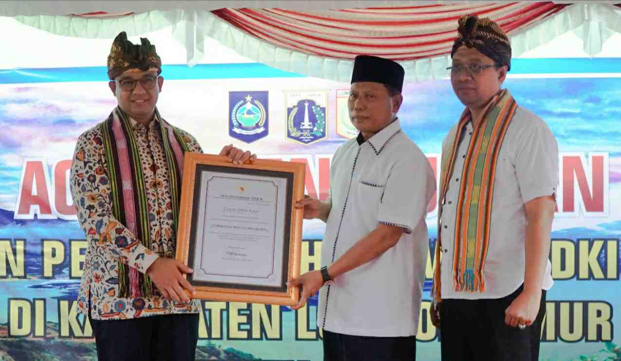 Gubernur Anies Baswedan bersama Bupati Sukiman Azmy, dan Gubernur Zulkiflimansyah