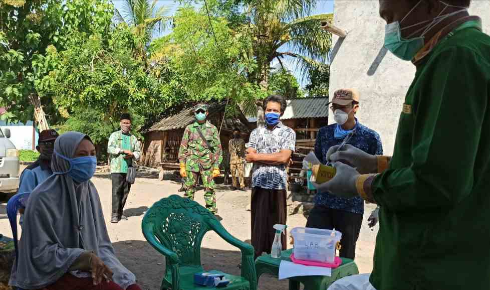 Anggota TNI turus mendampingi tim medis lakukan rapid tes di Batunampar, Jerowaru
