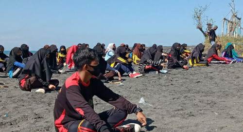 LOMBOKSATU.com – Pandemi Covid-19 tidak menyurutkan semangat pihak sekolah untuk menyelenggarakan masa orientasi siswa (MOS) seperti yang dilakukan MA NW Suralaga di Pantai Maik Anyar Kelurahan Ijo Balit Kecamatan Labuhan Haji Lombok Timur, Kamis (09/07/2020).