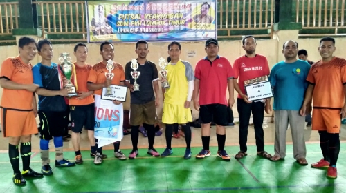 LOMBOKSATU.com – Tim Futsal Sumber Daya Manusia (SDM) Program Keluarga Harapan (PKH) Kecamatan Masbagik keluar sebagai juara pada turnamen futsal yang dilaksanakan Asosiasi Futsal PKH Lombok Timur. Juara itu diraih setelah Tim Futsal SDM PKH Masbagik mengalahkan Tim Kecamatan Pringgabaya.