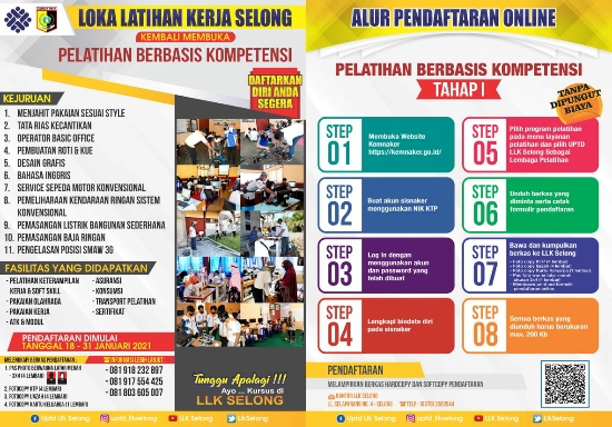 Tahun 2021 ini, Unit Pelaksana Teknis Dinas (UPTD) Loka Latihan Kerja (LLK) Dinas Tenaga Kerja dan Transmigrasi (Disnakertrans) Lombok Timur kembali membuka pelatihan kerja gratis bagi masyarakat yang ingin memiliki keterampilan kerja.