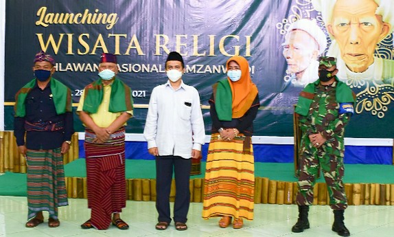 Bupati Lombok Timur HM Sukiman Azmy didampingi Ketua Yayasan Pendidikan Hamzanwadi NW Pancor H Muhammad Jamaluddin dan Kadis Pariwisata Lotim Dr H Mugni melaunching program Wisata Religi Makam Pahlawan Nasional Hamzanwadi, Kamis (28/01/2021).