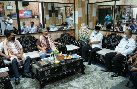 LOMBOKSATU.com – Bupati Lombok Timur (Lotim) HM Sukiman Azmy bersama Kepala UPTP BLK Lombok Timur H Sabar menerima langsung kunjungan Gubernur Sulawesi Barat (Sulbar) HM Ali Baal Masdar beserta rombongan di Unit Pelaksana Teknis Pusat Balai Latihan Kerja Lombok Timur (UPTP BLK Lotim), Rabu, (31/032021).